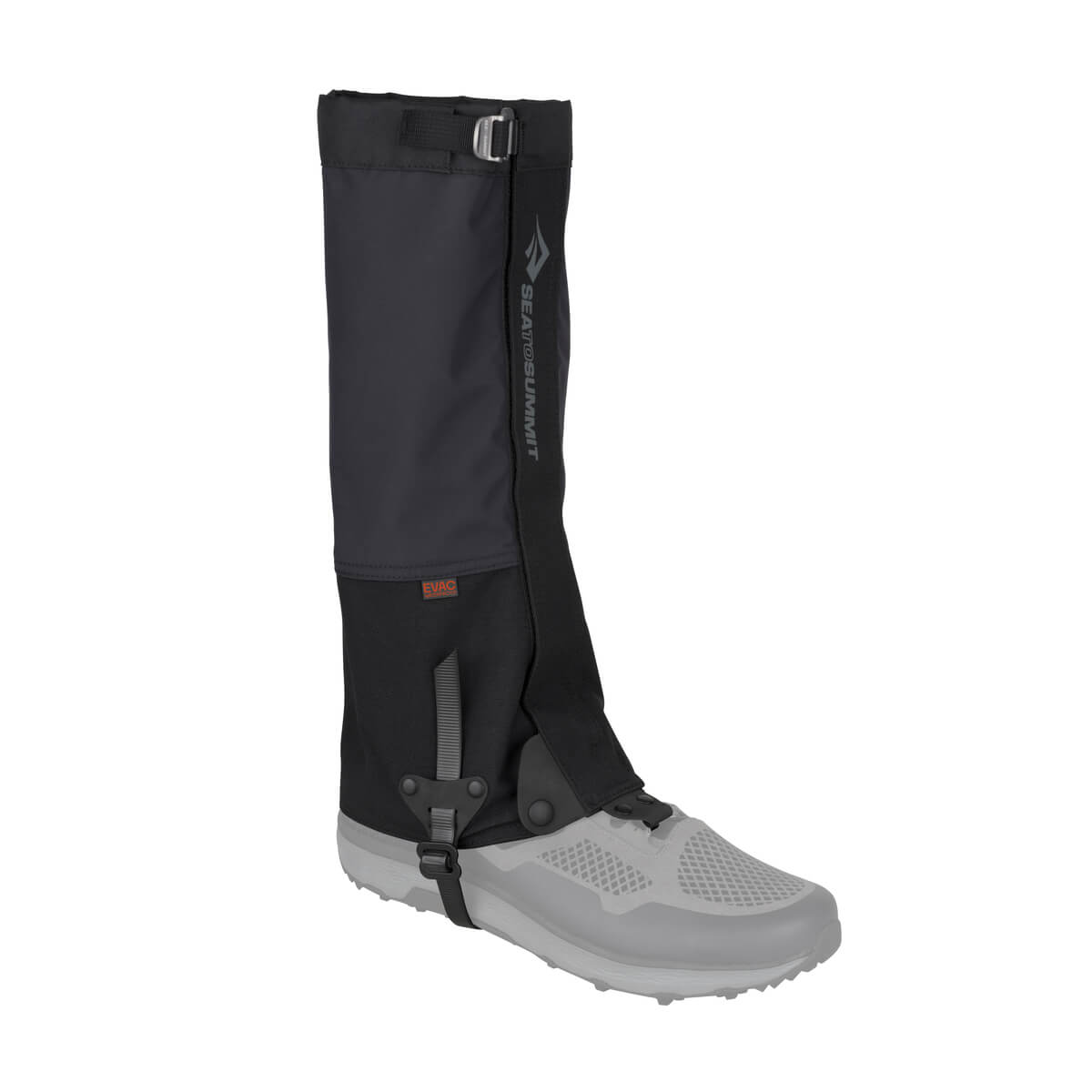 Quagmire Evac Gaiters are tough, durable and breathable. The heavy-duty Evac upper allows moisture vapor to escape, while the 1000D Cordura foot section provides all the durability you need in the backcountry. The 2-inch / 50mm wide hook and loop fastener will protect your shins when you are walking off-trail. Rugged hardware and the strongest foot strap in the known universe round off this top-of-the-line gaiter.